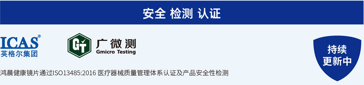 檢測依據(jù)及方法參照國家標(biāo)準(zhǔn)GB/T31713-2015附錄A,證實(shí)鴻晨健康鏡片抑菌為非溶出性抑菌,更安全。