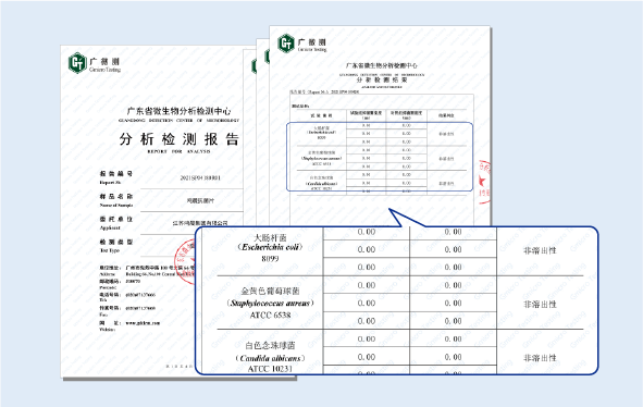 此次安全性檢測由廣東省微生物分析檢測中心檢測并出具報(bào)告。