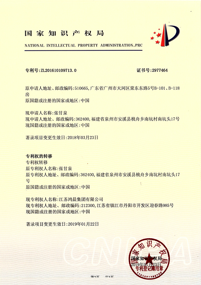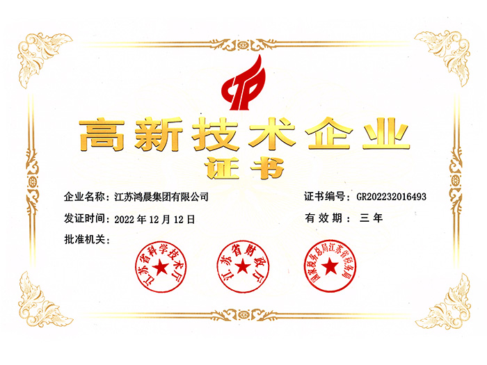 鴻晨集團先后獲得了"國家高新企業(yè)""江蘇省質(zhì)量信用產(chǎn)品"、“全國質(zhì)量信譽產(chǎn)品"、“國家檢測達標產(chǎn)品"等品質(zhì)證書。