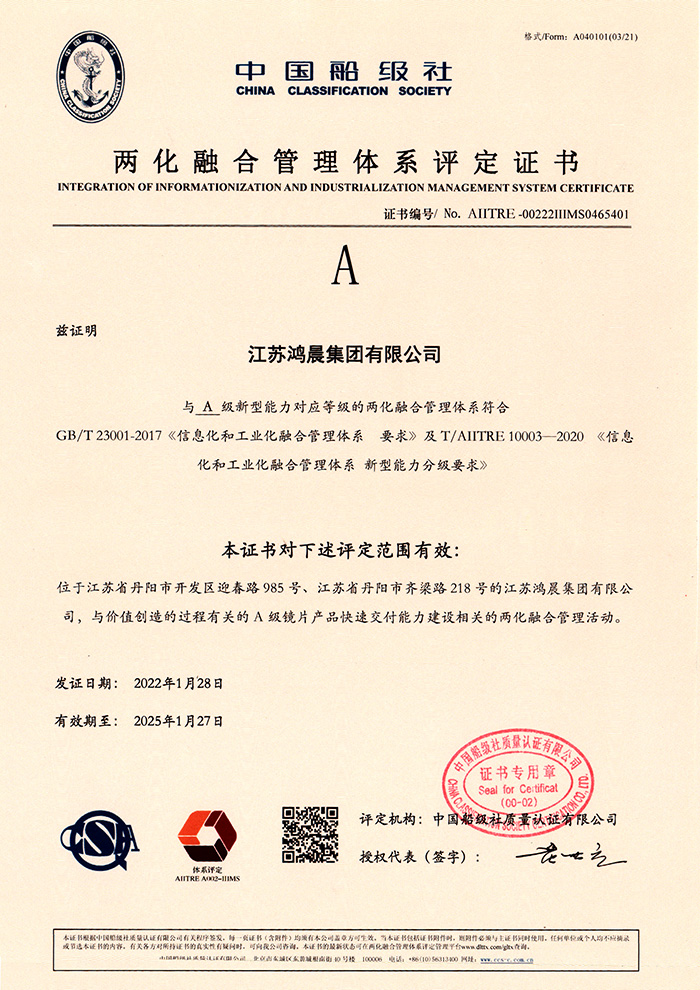 鴻晨光學(xué)將2003年定位成企業(yè)的品質(zhì)和企業(yè)管理的建設(shè)年,通過ISO9000國際質(zhì)量管理體系認證,歐洲CE,美國FDA產(chǎn)品認證,等各項國家級的企業(yè)認證。